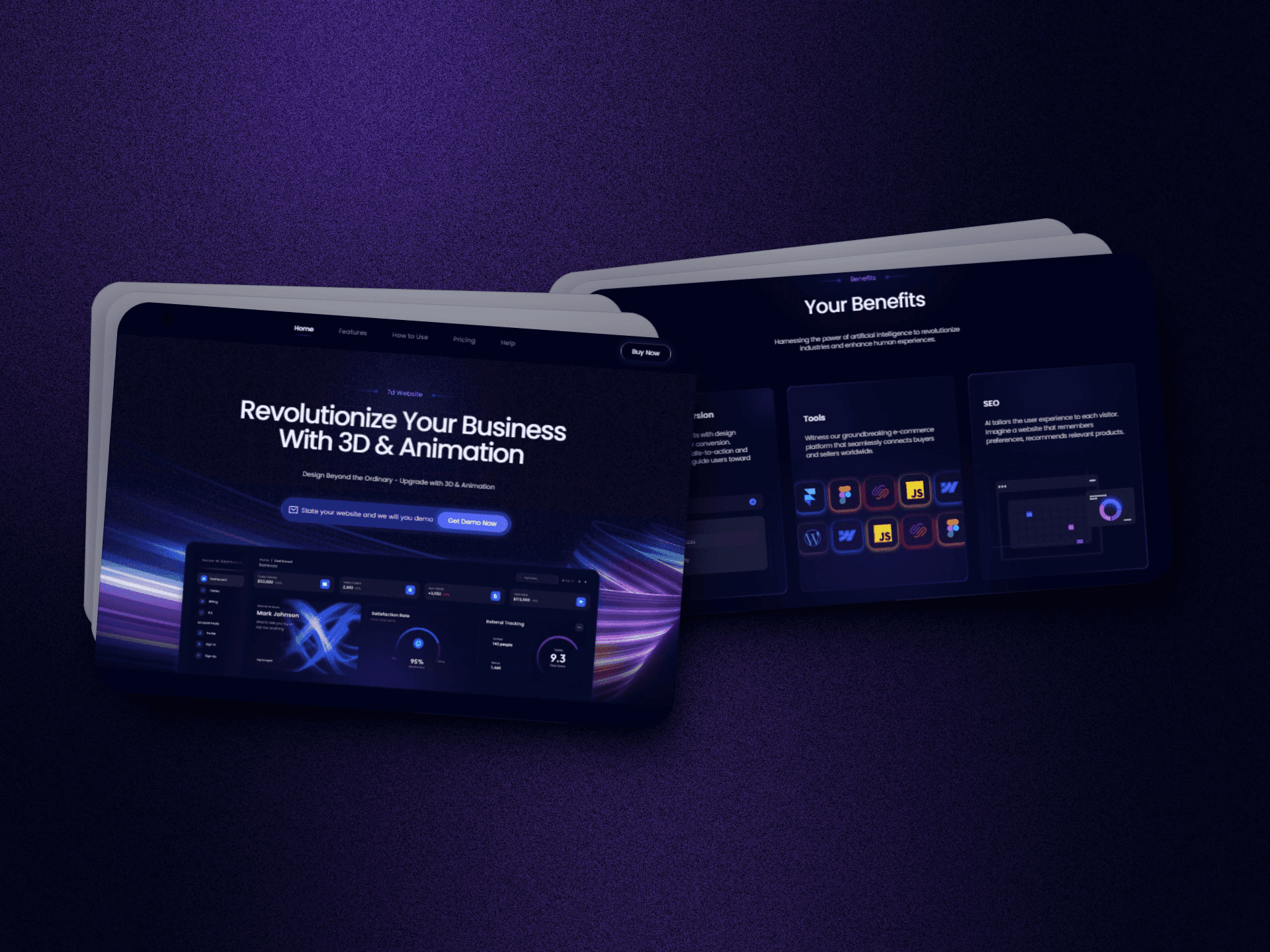 Developed a futuristic web design platform specializing in 3D animations and interactive elements.