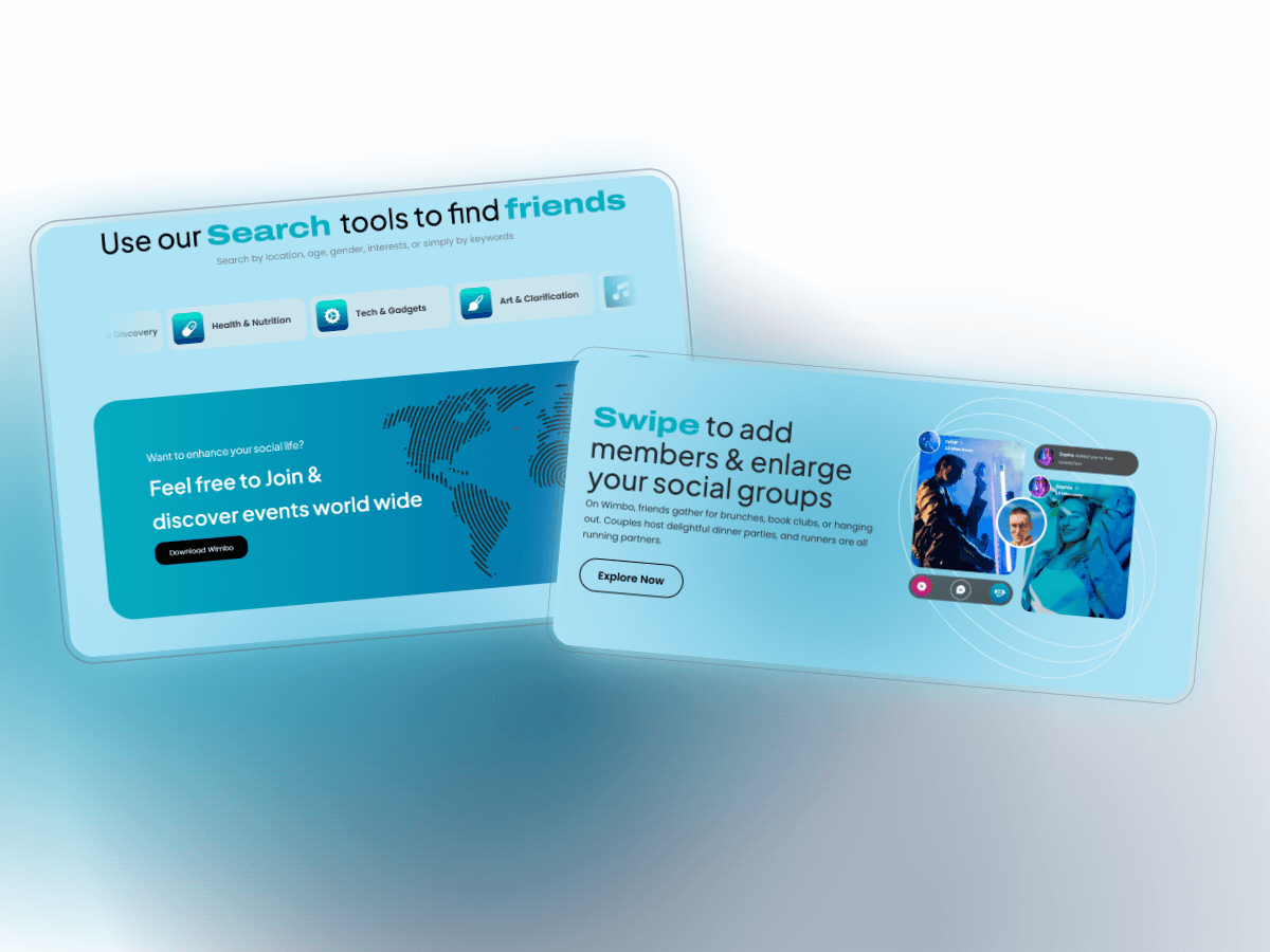 Wimbo is a social platform design to connect people based on shared interest and passions, fostering real-world friendships and meaningful connections. Unlike traditional apps, Wimbo focuses on building genuine relationships through shared experiences, helping users find their community and create lasting memories.